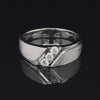 This wonderful wedding band is the perfect way to accessorize a formal wardrobe with its brilliant design. Exclusively handcrafted to perfection this ring has center-hosted 3 sparkling round big diamonds in diagonal row to add attractive look. A total of 0.25 carat of diamonds are set in 10K white gold with high polish edges and sand blast finish on white gold shoulders.