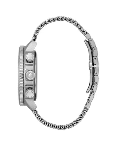 Stainless steel case with a silver-tone stainless steel mesh bracelet. Fixed stainless steel bezel. Black dial with silver-tone hands and index hour markers. Minute markers. pilot's rotating slide rule. Dial Type: Analog-digital. Luminescent hands and markers. Perpetual calendar. Chronograph - sub-dials displaying: two - 24 hour digital utc time display. Citizen Caliber Eco-Drive U680 eco-drive movement. Scratch resistant mineral crystal. Pull / push crown. Solid case back. Round case shape, case size: 48 mm, case thickness: 15.5 mm. Band width: 23 mm, band length: 8 inches. Deployment with push button release clasp. Water resistant at 200 meters / 660 feet. Functions: atomic, perpetual calendar, alarm, date, day, GMT, second time zone, , world time, chronograph, hour, minute, second, power reserve indicator. Additional Info: with atomic clock synchronization for superior accuracy, this perpetual calendar chronograph receiving radio sigsuitable for recreational scuba diving. Casual watch style. Watch label: Japan Movt. Citizen Navihawk UTC Eco-Drive Chronograph Mens Watch JY8030-83E.